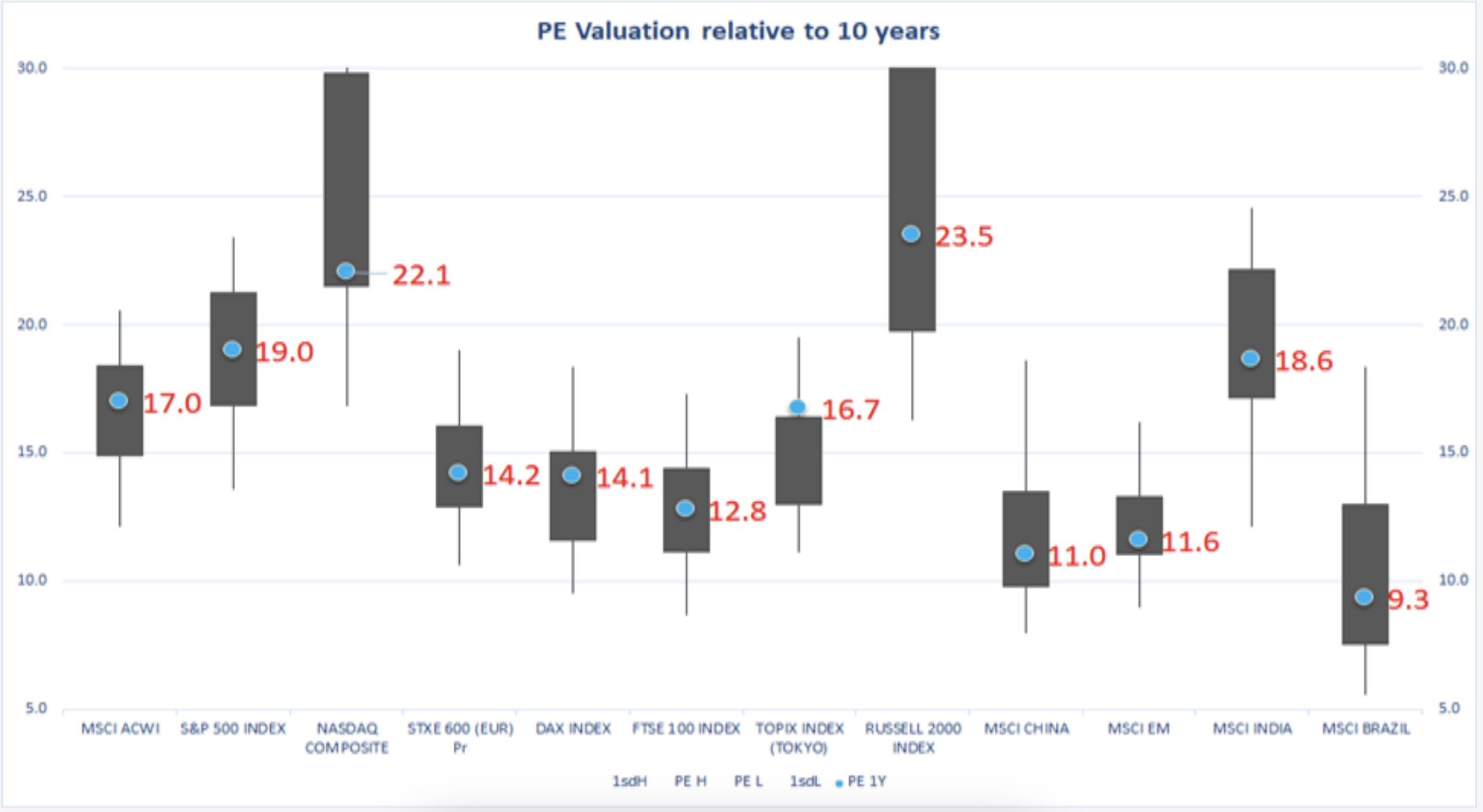 Equities Downgrade to Neutral: The downgrade in our macro views coupled with our views that the maximum impact of this current crisis has not fully run its course. GDP and earnings downgrades should ensue and inflation upgrades supports the downgrade of equities to Neutral. While we believe a relief rally can occur in the coming weeks because the market is oversold, we will be willing to reduce our equities further. Valuation has receded from its extreme expensive levels no doubt but an additional study from UBS Research shows that forward PE multiple typically corrects 6 ppt from the peak and bottoms at 14x forward PE in previous oil-shocks. The S&P is trading now at 18x having corrected from 22x. Amongst the key indices, NASDAQ looks attractive trading at close to its -1sd 10-year forward PE at 22x.
